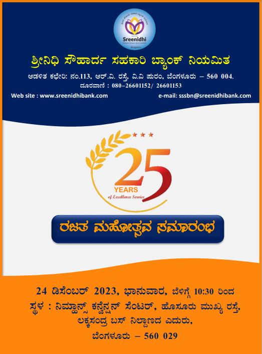Sreenidhi Souharda Sahakari Bank Niyamitha, a unique urban Co-operative Bank founded in 1998, rests on the pillars of co-operation, thrift, fellowship, character and the selfless service.